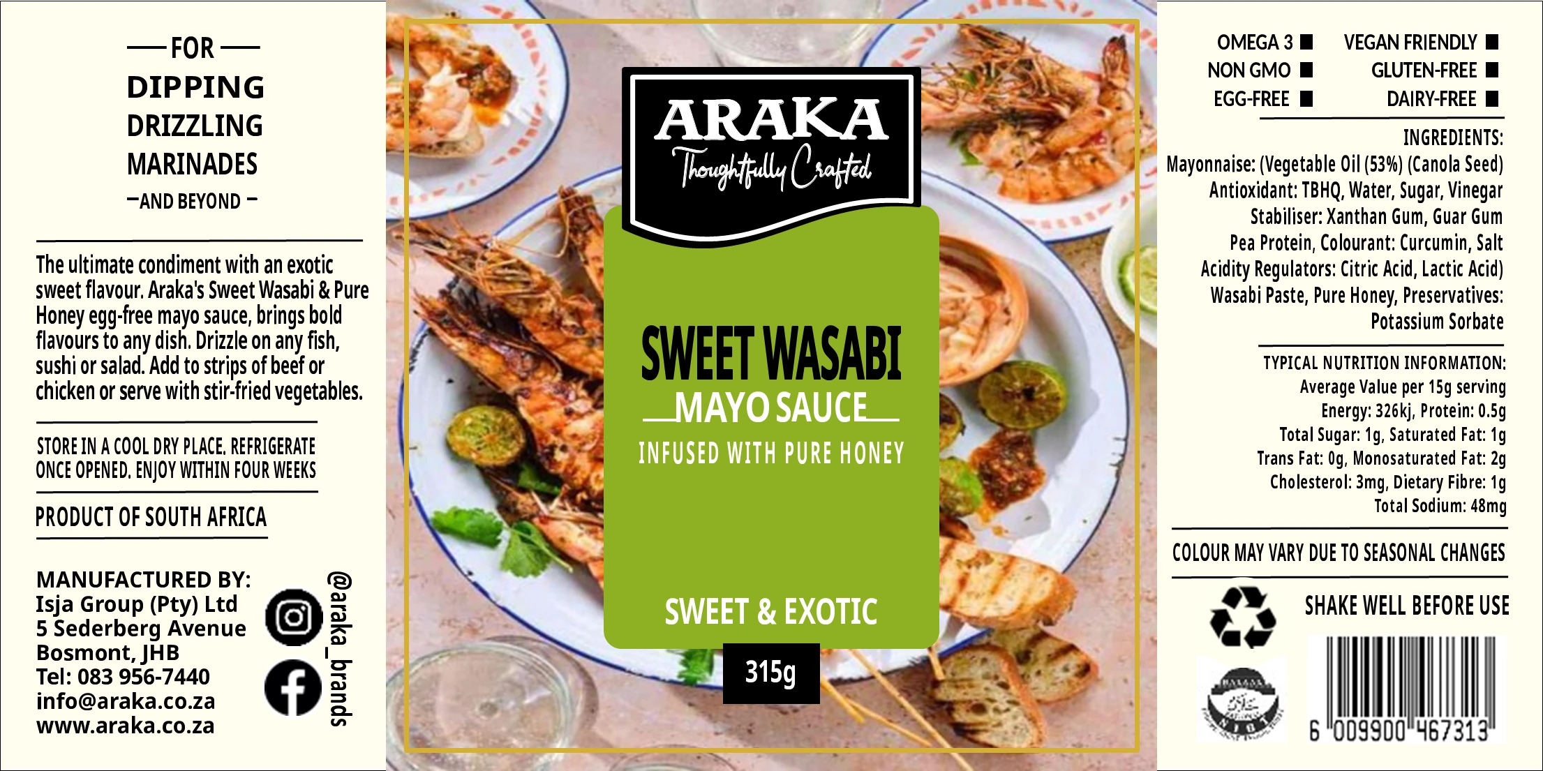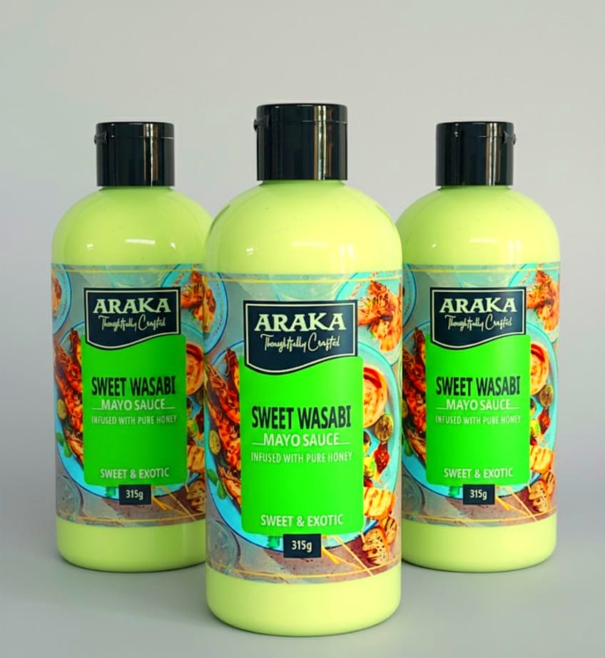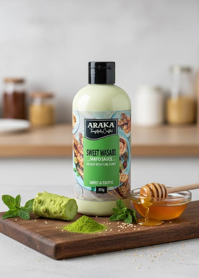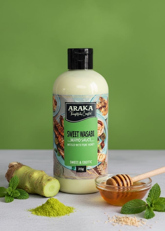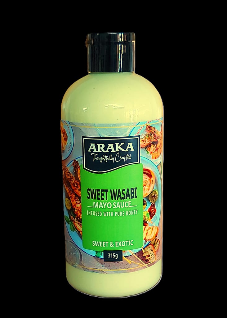 The ultimate condiment with an exotic sweet flavour. Araka’s Sweet Wasabi and Pure Honey egg-free mayo sauce, brings bold flavours to any dish. Drizzle on any fish, sushi or salad. Add to strips of beef or chicken or serve with stir-fried vegetables.